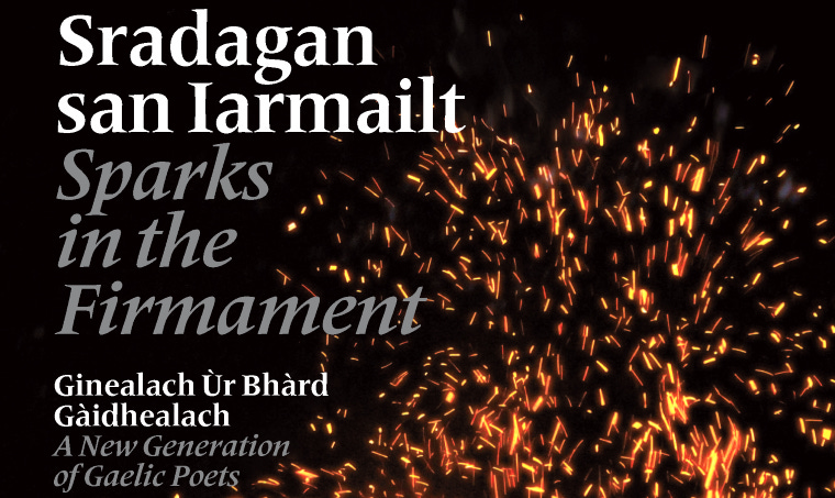 Once in a while, we might see a shooting star – flashes of cosmic dust that light up our atmosphere, like beacons from the heavens burning bright. The new anthology from Francis Boutle Publishers, Sradagan san Iarmailt / Sparks in the Firmament, reflects a similar phenomenon, bringing together a shining collection of Gaelic poets who have emerged since the new millennium. Editor Marcas Mac an Tuairneir assembled this fresh constellation of voices at a momentous time for the Gaelic language, following the appointment of Peter Mackay as Scotland’s first Gaelic National Poet, and the passing of the Scottish Languages Act recognizing Gaelic and Scots as official. Yet more than that, the anthology raises a diversity of relevant social concerns brought forth in language that is taking its place in contemporary literature.